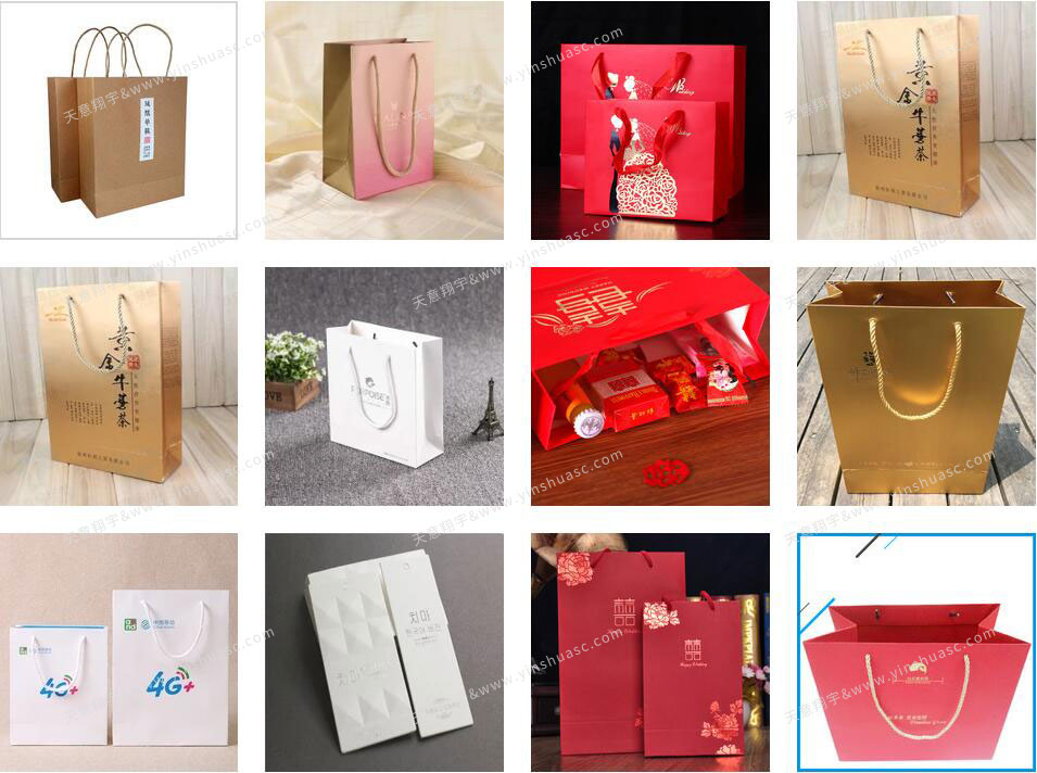 印品名称 手提袋印刷 装订方式 成品尺寸 300*400*80mm,320*420*100mm,320*420*80mm 工艺可选 覆膜,烫金,击凸,压纹,局部UV 纸张类型 白卡纸 白牛皮 牛皮纸 灰板纸 印刷方式 专版CMYK四色胶版印刷 纸张克重 150克 200克 250克 300克 出货时间 2-5天