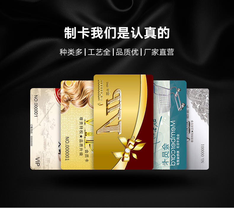 印品名称 PVC卡片印刷 装订方式 模切圆角 成品尺寸 85.5*54mm 工艺可选 烫金、击凸、打码 纸张类型 PVC聚氯乙烯 印刷方式 合版CMYK四色印刷 纸张克重 0.38mm厚度、0.76mm厚度 出货时间 2-5天