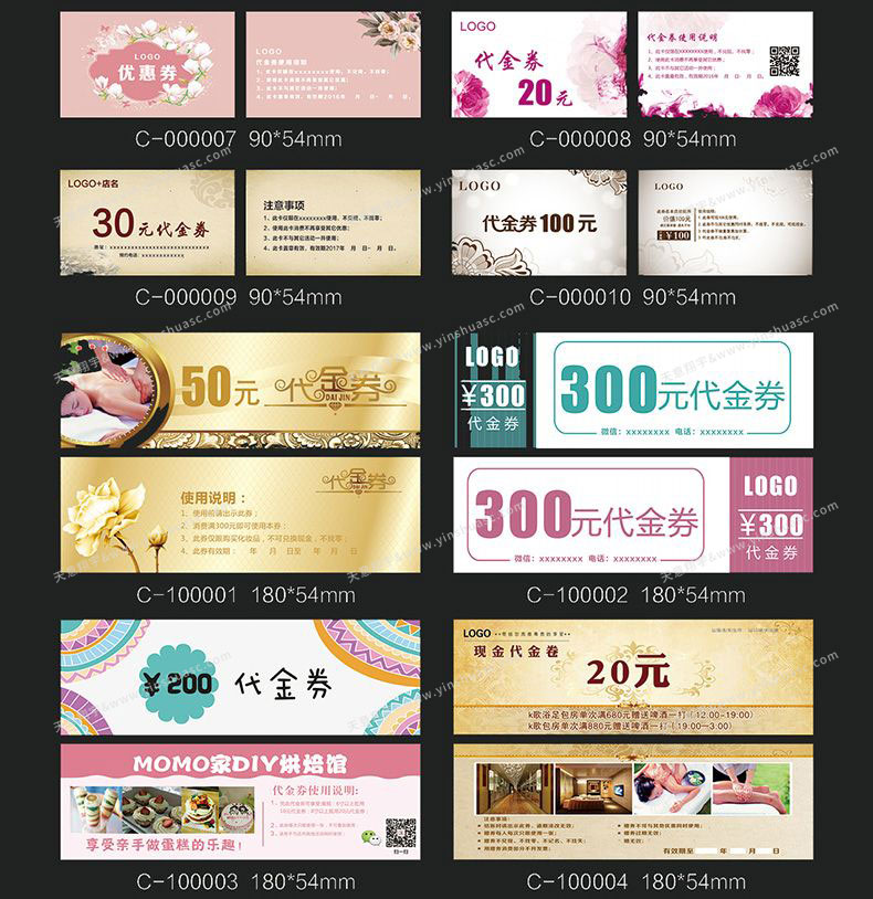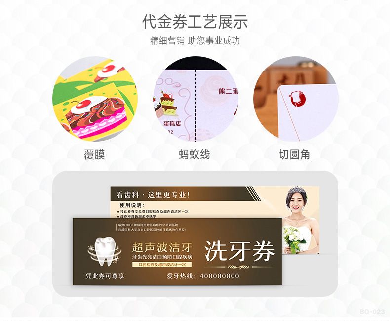 印品名称 代金券印刷 装订方式 直接切成品 成品尺寸 80*210mm,90*210mm,70*190mm 工艺可选 覆膜,烫金,击凸,压纹,局部UV 纸张类型 铜版纸 哑粉纸 双胶纸 牛皮纸 印刷方式 专版CMYK四色胶版印刷 纸张克重 150克 200克 250克 300克 出货时间 2-5天